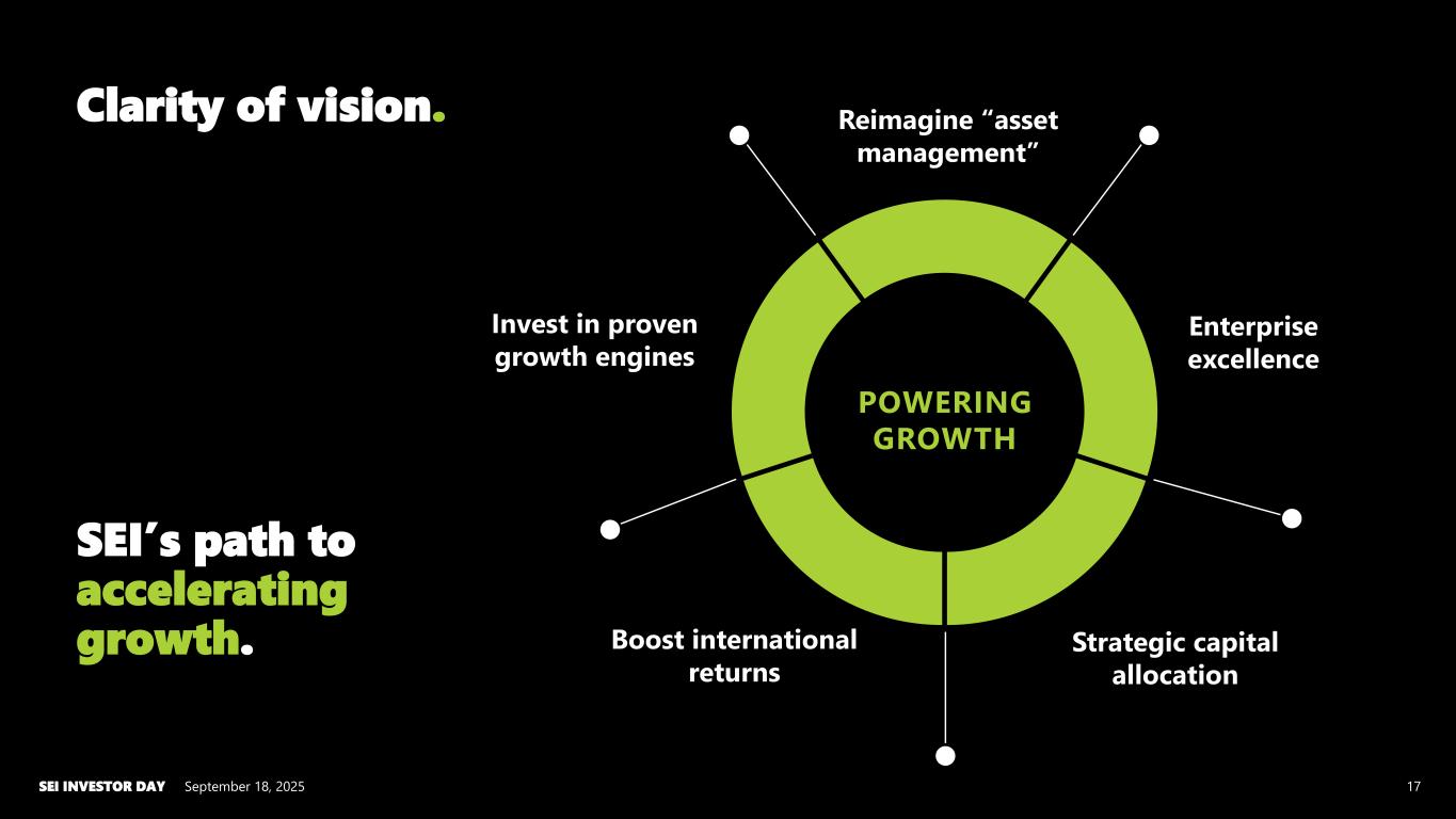 September 18, 2025SEI INVESTOR DAY 17 POWERING GROWTH Invest in proven growth engines Enterprise excellence Strategic capital allocation Boost international returns Reimagine “asset management” Reimagine “asset management” Clarity of vision. SEI’s path to accelerating growth.